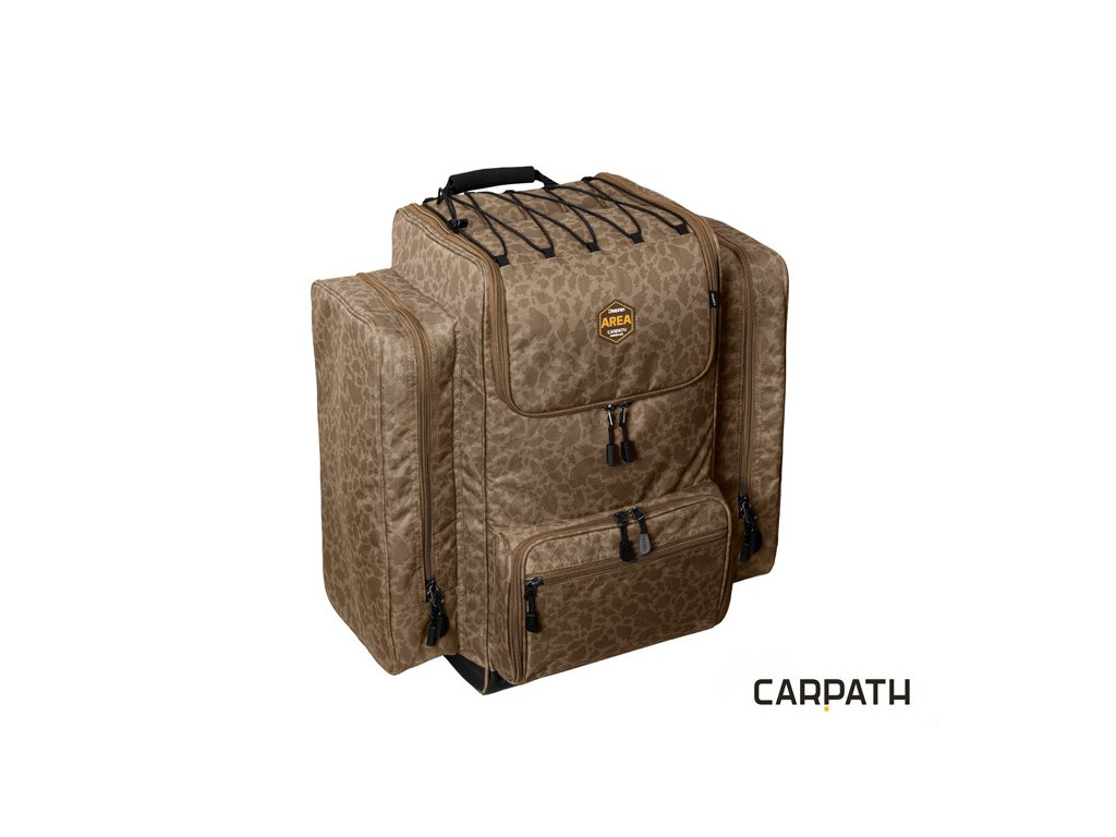 Batoh je vybaven kvalitními zipy. Vnější zipy jsou opatřeny plastovými taháčky. Design tašky doplňuje naše jedinečná hnědá CARPATH kamufláž se siluetami kaprů.