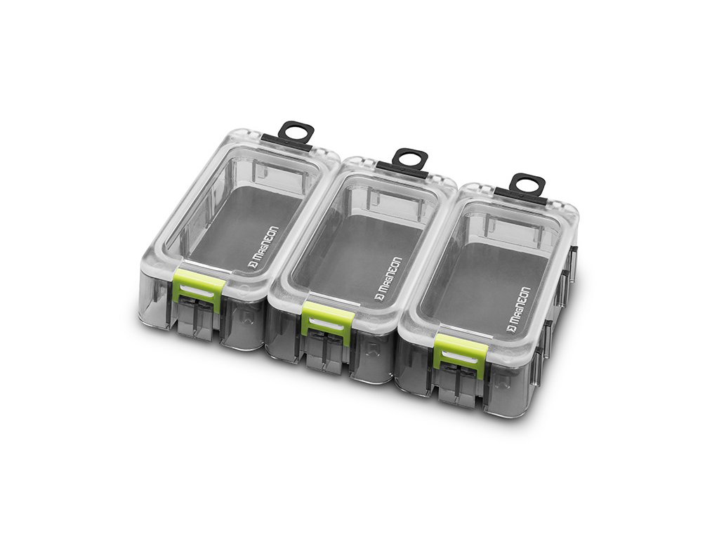 Delphin MagNEON je kompaktní, vodotěsná krabička určená pro přehledné uložení drobné rybářské bižuterie, jako jsou háčky, karabinky či obratlíky. Vyniká několika inovativními detaily, jako je praktický spojovací mechanismus nebo nalepovací magnetický pásek, který zamezuje nechtěnému vypadnutí kovových komponentů. Právě tyto detaily z ní dělají dokonalého společníka na každou vycházku k vodě.