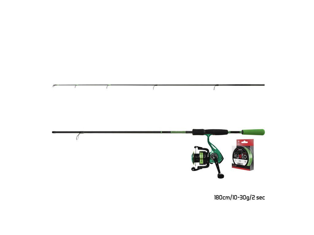 Delphin WASABI Spin NXT, blank je vyroben z ideálního poměru kompozitních materiálů. Rukojeť z EVA pěny padne do ruky při zdolávání i nahazování. Akce prutu je příjemná a bonusem jsou bezvýplňová očka, díky čemuž odpadá zbytečný strach z jejich nežádoucího poškození. Citlivá špička prutu vám zaručí ideální vedení nástrahy, při kterém ucítíte i jemnější záběry ryb. Svým zeleno-černým provedením dokonale zapadne do setu naviják Delphin ELIXIR. Tělo z lehkého kompozitového materiálu zaručuje dlouhou životnost. Kuličková ložiska v počtu 3+1 spolu s převodovým poměrem 5,0:1 a mechanismem s vyváženým rotorem zaručí tichý a plynulý chod s důkladným ukládáním vlasce. Kapacita cívky je dostatečná k dané rybolovné technice, při průměru vlasce 0,16mm se vejde na cívku až 300m vlasce. Samozřejmě, aby byl set kompletní, tak nesmí chybět vlasec KYOTO s minimální roztažností, což vám zaručí okamžitý kontakt s rybou při záběru. Přívlačový set potěší široké spektrum rybářů, kteří se věnují rybolovné technice lovu dravců.