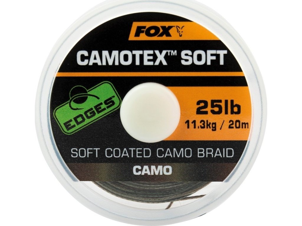 Fox Návazcová Šňůrka Edges Camotex Soft 20 m 35lb - 20m, Výhodou je nový vylepšený maskáčový vzor, který je neviditelný na dnech jezer či řek Obsahuje pružnou potápivou šňůrku v camo provedení, která je ukryta pod vysoce měkkým vnějším potahem Univerzální šňůrka, která může být použita pro nespočet různých návazců Ideální šňůrka pro lov nad rostlinami nebo na měkkém dnu Doporučujeme odstranit