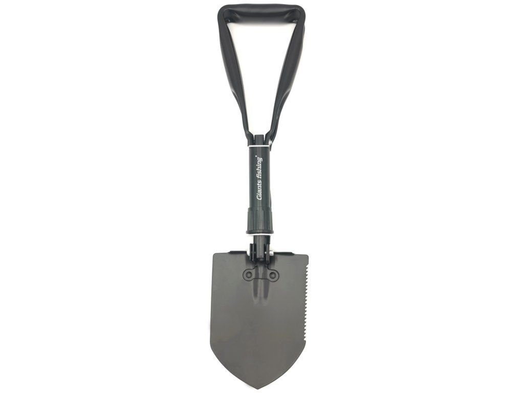 Všestranná skládací lopatka z ocelo-uhlíkové konstrukce se šroubovací hlavicí pro bezpečné uzamčení při používání.