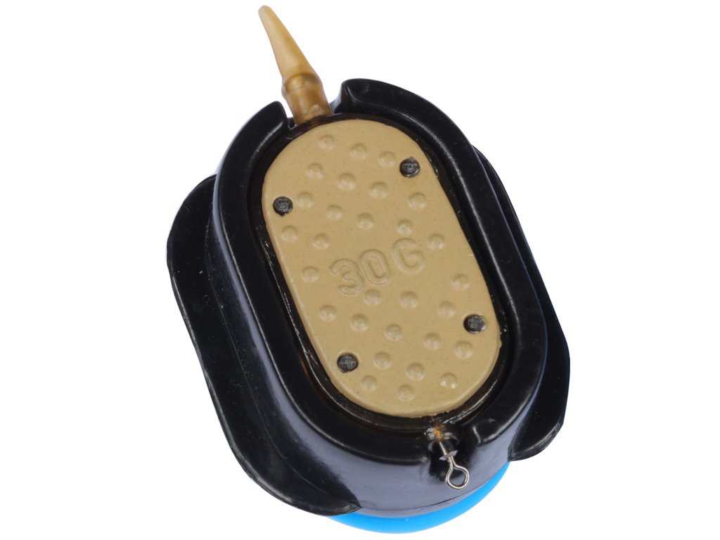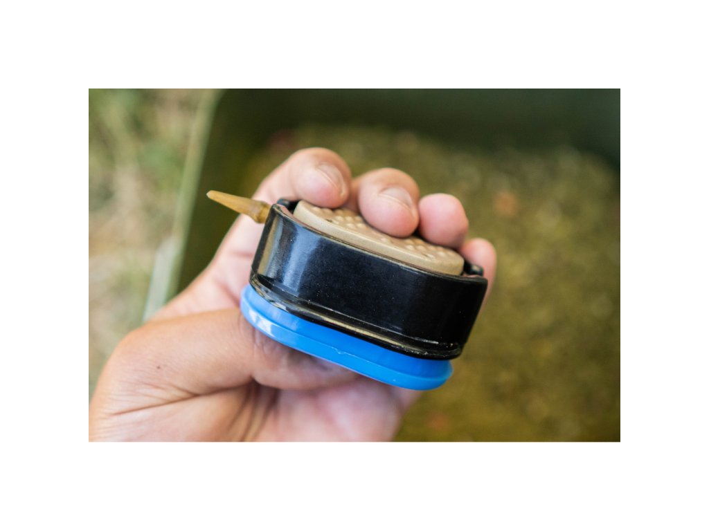 Snadné a rychlé použití formičky. Stačí po okraj naplnit krmením, přiložit krmítko, stlačit a zmačknout tlačítko umístěné po celé spodní straně formičky. Z formičky Vám vypadne úhledná „bábovička“ a vy můžete nahazovat.