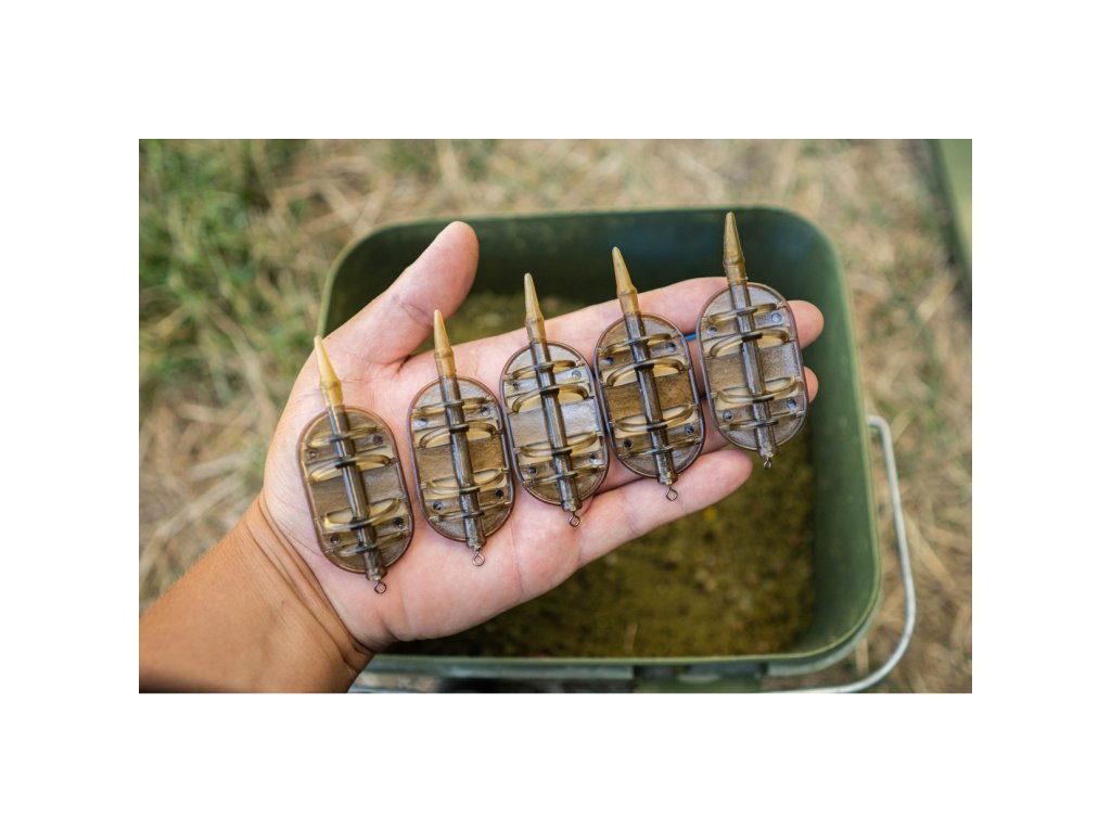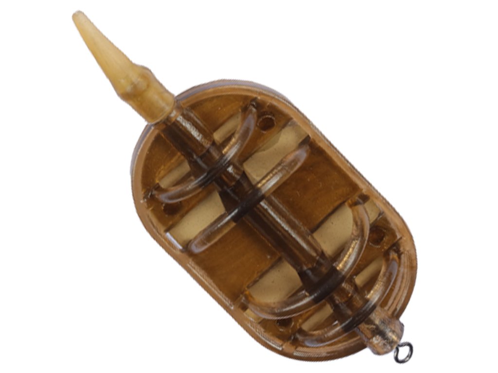 Se stlačenou krmítkovou směsí nebo peletami odhodíte daleko i za silného větru. Tvar krmítka zaručuje, že drží při dně i v proudu. Součástí krmítka je obratlík velikosti č. 8, který můžete popřípadě vyměnit za rychlovýměnný, pro rychlou výměnu návazce. Při vyjmutí obratlíku můžete krmítko používat jako průběžné.