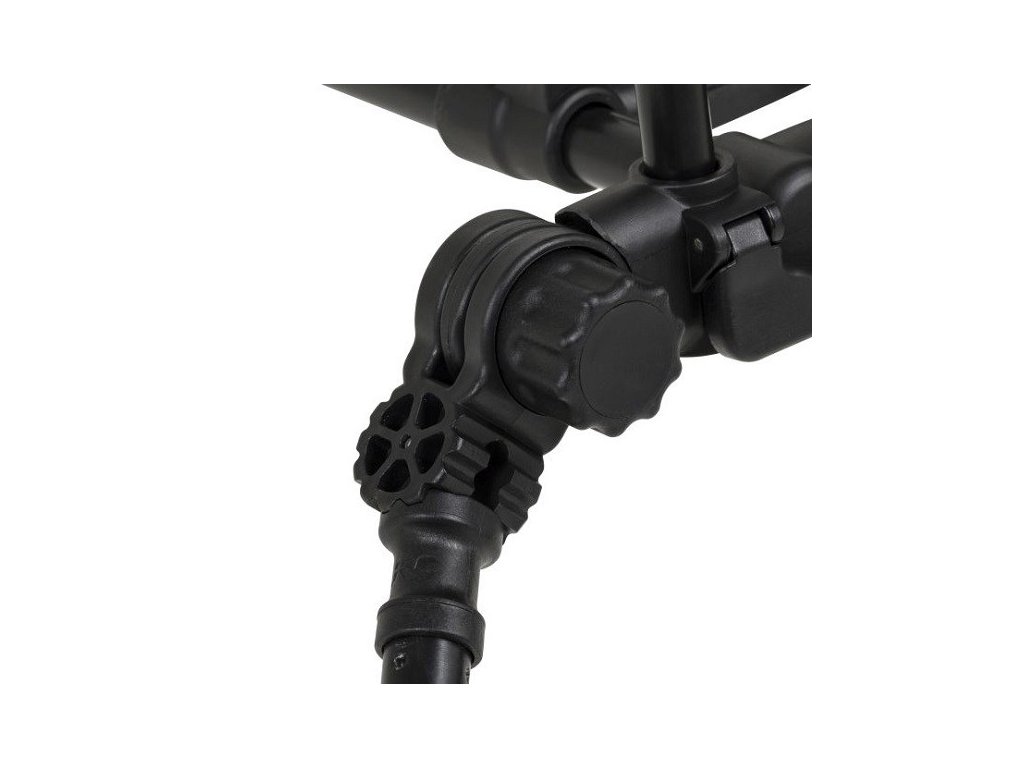 Stojan JRC Extreme TX je jeden z nejvšestranějších stojanů na trhu, použitelný v jakýchkoliv podmínkách. Díky nastavení délky, výšky a rozchodu noh se přizpůsobí jakémukoliv typu lovného místa.Pár dlouhých noh dodávaných navíc umožňuje při chytání na extrémní vzdálenosti stabilní postavení stojanu do výšky.Samozřejmostí je kvalitní masivní, ale lehké provedení, moderní dizajn a spolehlivost.Inteligentní systém nastavení noh a použité plastové části jsou z vysoce kvalitního a pevného ABS plastu.Na hrazdách je použitý standartní závit na uchycení signalozátorů záběru se zabudovanými protisměrnými maticemi pro přesné a pevné uchycení signalizátorů. Už zádné podkládání gumiček pro signalizátory a používání kleští pro dotahování, stačí Vám obyčejná mince a signalizátor bude rychle a pevně na svém místě. Protisměrné matice se dotahují za spodní strany hrazd.Verze na 3 pruty.Lehká, robustní hliníková konstrukce, matně černý povrch, robustní klouby a klipy, nastavitelný závit pro lehké upevnění signalizátorů.Kompaktní transportní rozměry, je dodáván v polstrovaném přepravním pouzdře s místem na signalizátory.