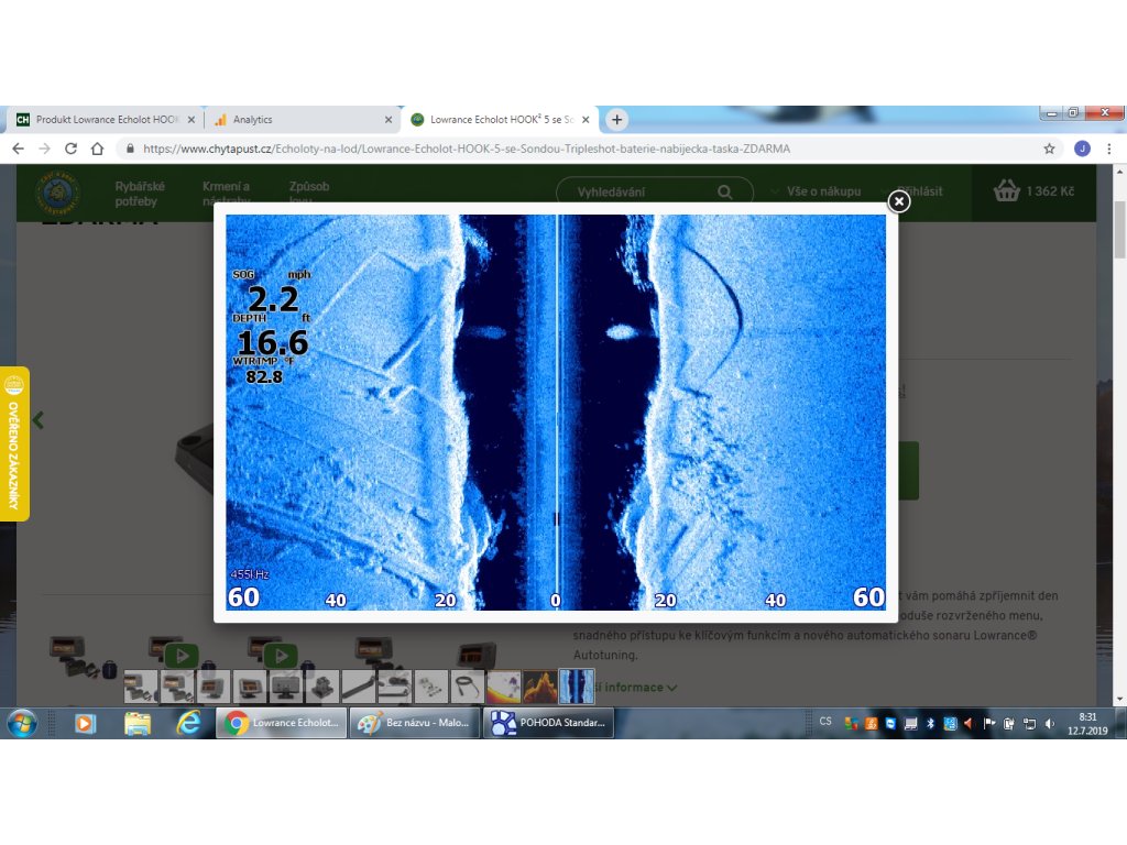 - Frekvence sonaru Broadband: 200 kHz (úhel záběru 120°)/ High CHIRP (120°)