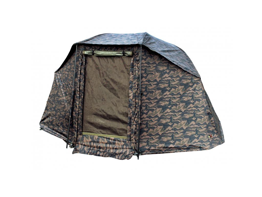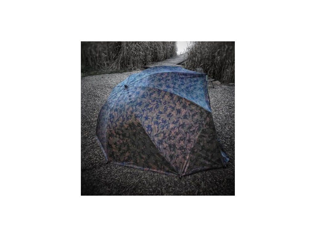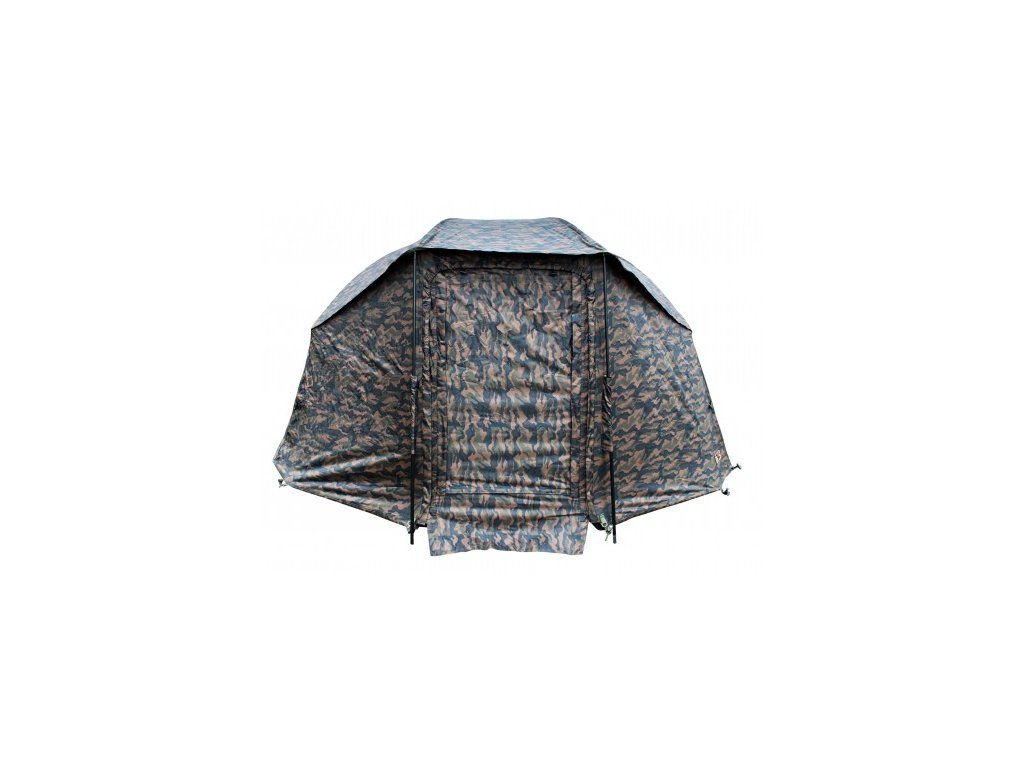 Je nám ctí vám představit top produkt z naší exkluzivní camo edice. Toto brolly prošlo dlouhodobým vývojem a zátěžovým testováním pro splnění všech náročných požadavků dnešních rybářů. Jsme rádi, že jsme docílili vysoké kvality a moderního designu za rozumnou cenu. Základem brolly je pevná deštníková konstrukce s podpěrnými, teleskopickými tyčemi. Plášť je tvořen z vysoce kvalitního materiálu 210D s vnitřním PVC potahem. Hlavní výhodou je jeho rychlé a jednoduché postavení, díky deštníkovému mechanizmu. Uvnitř brolly najdeme velmi krátkou a decentní středovou tyč, která vás ničím neomezuje ve velkorysém prostoru, který toto brolly nabízí. Na přední straně se nachází dvě bouřkové tyče. Přední panel má vstupní vchod na zip, který je srolovatelný a nebo také úplně odjímatelný. Součástí vstupu je také moskytiérový panel. Nad předním panelem z každé strany je jedna páska se suchým zipem pro odložení prutu. Součástí brolly je podlaha, teleskopické tyče a zavrtávací kolíky.